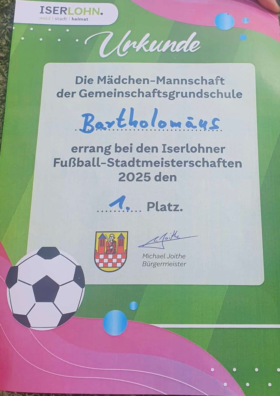 Unsere Mädchenmannschaft hat bei den Fußball- Stadtmeisterschaften den 1. Platz geholt.🥇⚽
