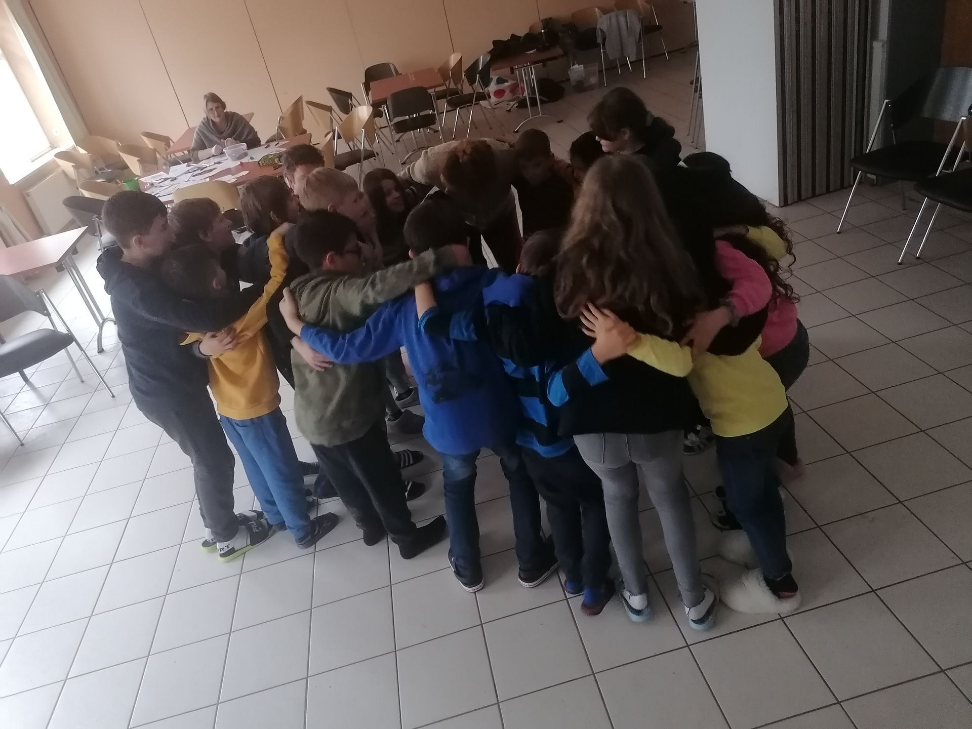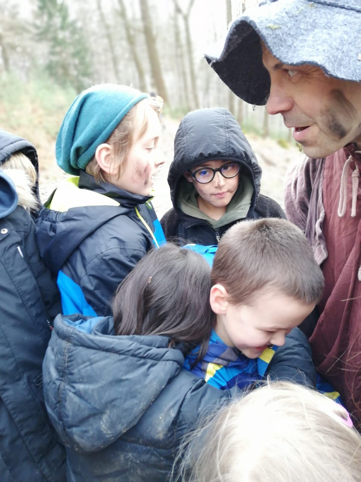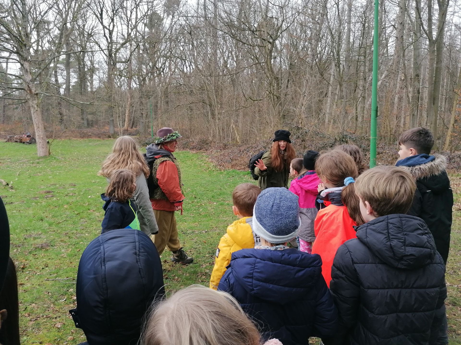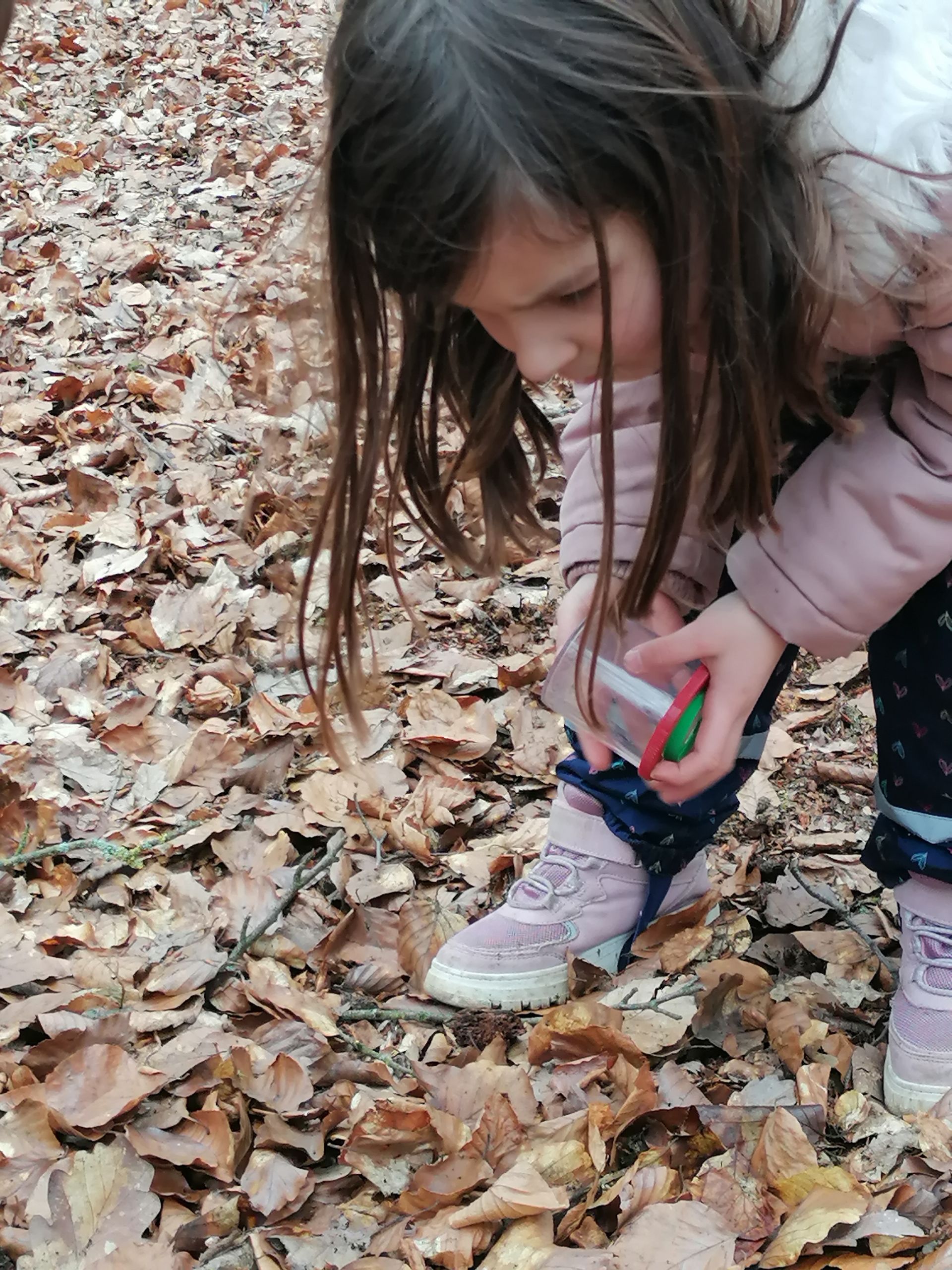 Wir waren auf der Streuobstwiese, um Apfelsaft zu pressen. Wir mussten zuerst die Apfelpresse aufbauen.