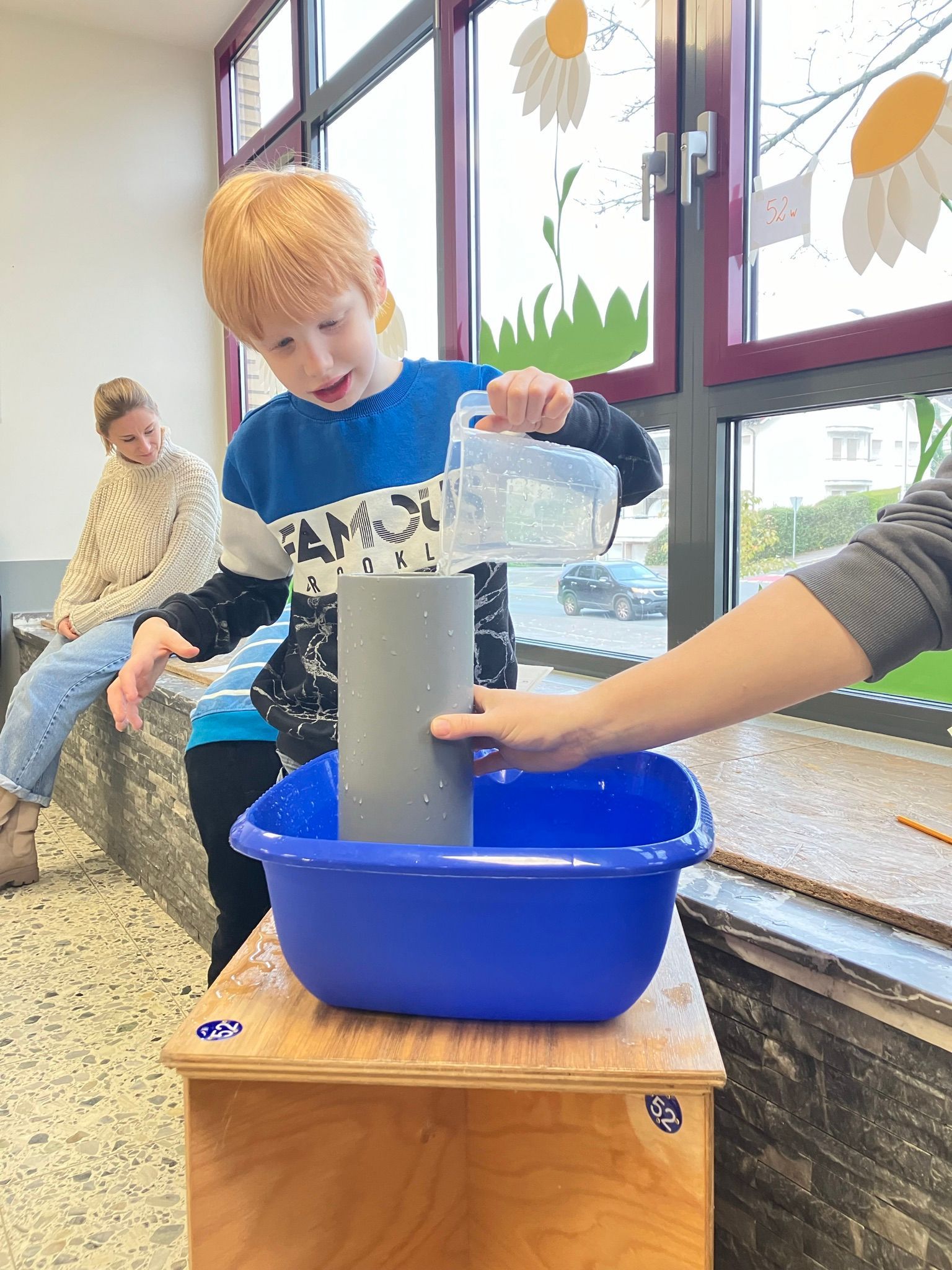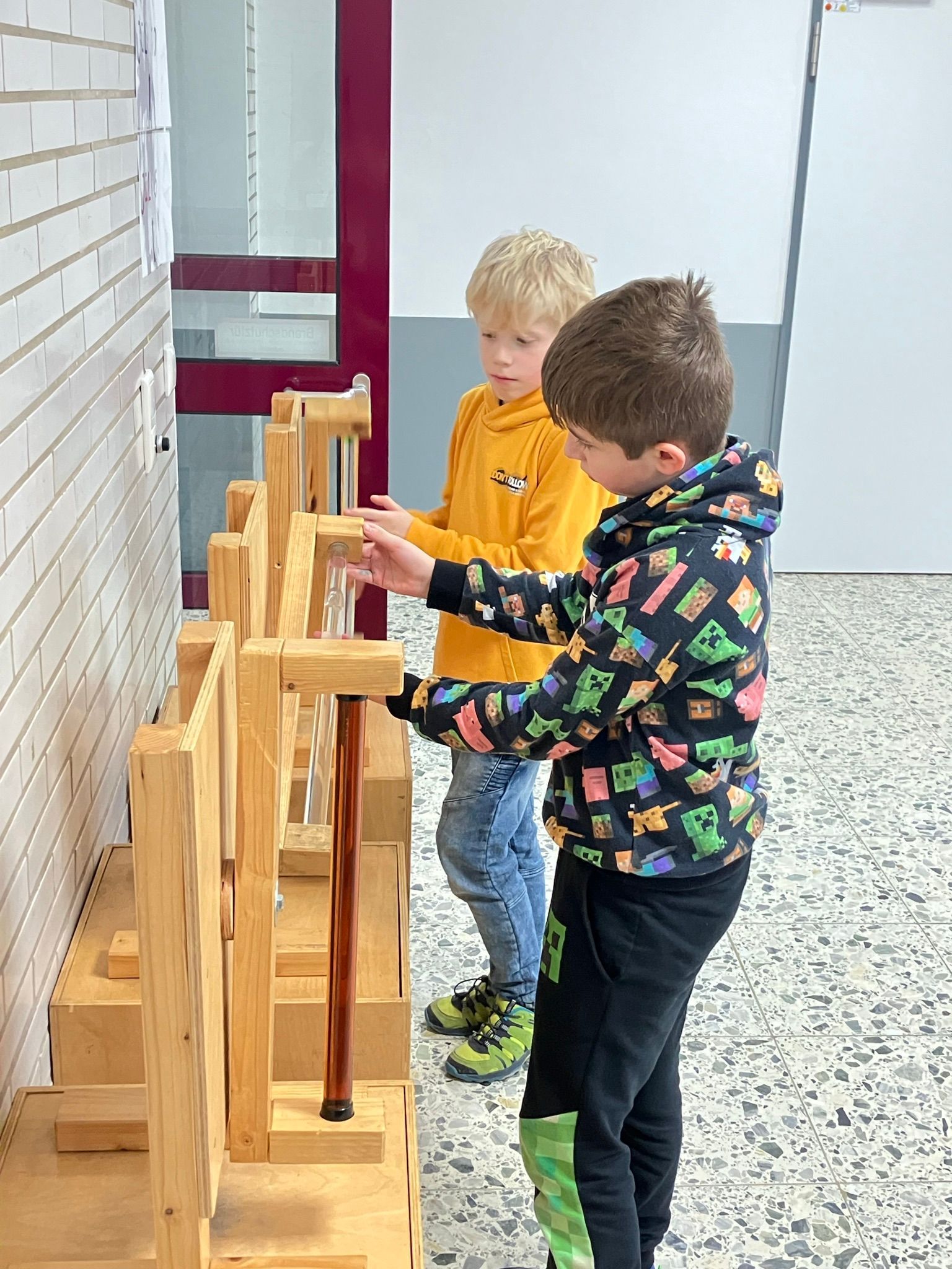 Die Miniphänomenta war für zwei Wochen bei uns in der Schule zu Besuch. Wir haben viele Experimente ausprobiert und es hat viel Spaß gemacht. Es waren insgesamt 25 Experimente. Wir haben sie in unsere Hefte gezeichnet und dazu geschrieben. Wir hatten Gruppen mit denen wir durch die Schule gezogen sind. Und wir haben zusammen die Experimente ausprobiert und dazu Fragen beantwortet so wie: Was sehe ich? Was habe ich getan? Was ist passiert? Und zum Schluss haben wir sogar überlegt: Warum ist das passiert? Jede JüL hatte 7 Stunden Miniphänomenta. Wir durften uns sogar eigene Namen zu den Experimenten ausdenken. Die Experimente waren mal mit Sand mal mit Luft und mal mit Wasser. Die Experimente hatten nicht die Nummern 1, 2, 3, 4, 5, sondern die Nummern 1, 2, 4, 6, 7, 8, 9, 12 und so weiter, weil wir nicht genau die Nummern 1 – 25 bekommen haben. An einem Nachmittag sind sogar Eltern zu uns in die Schule gekommen und haben sich mit den Kindern die Experimente angeschaut und ausprobiert. Dazu gab es Waffeln, Apfelschorle und Wasser. Am 15.11.24 wurden die Experimente dann abgebaut und am 18.11.24 wurden sie abgeholt.